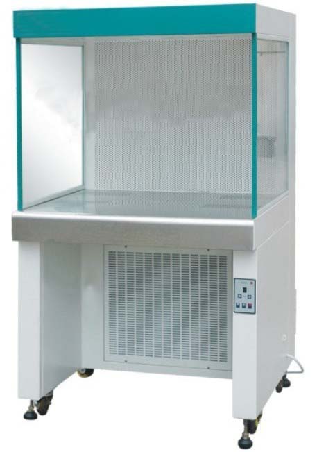 采用超薄型無(wú)隔板過(guò)濾器,將靜壓箱尺寸縮到最小,再配以不銹鋼臺(tái)面和玻璃側(cè)擋板。